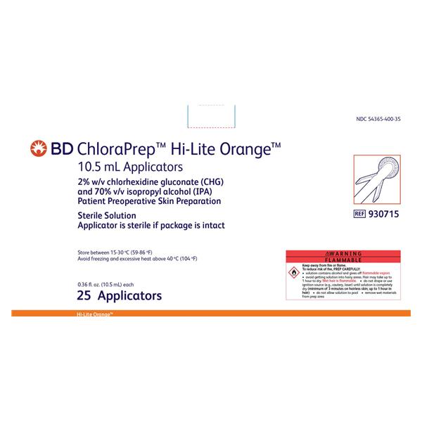 Applicator ChloraPrep CHG 2%/Isopropyl Alcohol 70% 10.5mL Hi-Lt Orng Tnt 25/Bx, 4 BX/CA